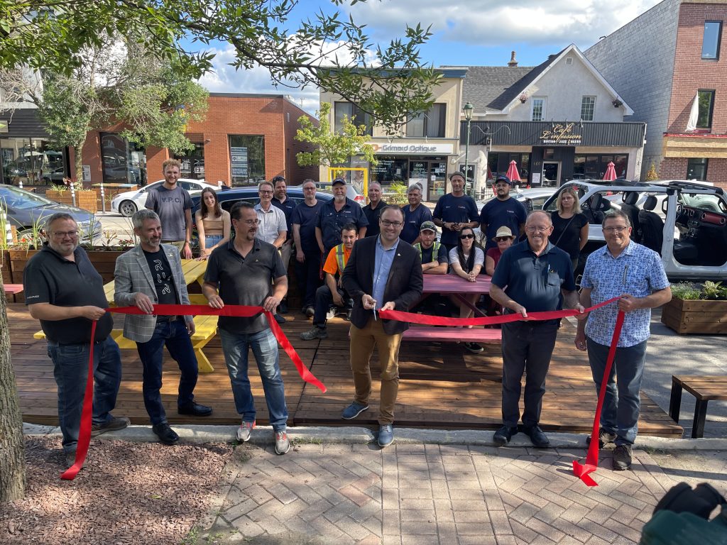 Lachute, le 7 juillet 2022 – Le maire Bernard Bigras-Denis ainsi que des membres du Conseil municipal se sont réunis hier, au centre-ville, pour inaugurer les aménagements transitoires et ont procédé à la coupe du ruban rouge en compagnie de l’ensemble des équipes municipales qui ont travaillé à pied d’oeuvre pour concrétiser ce projet innovant. Soulignons également la présence de l’organisme Rues Principales, qui a accompagné la Ville dans ce projet.