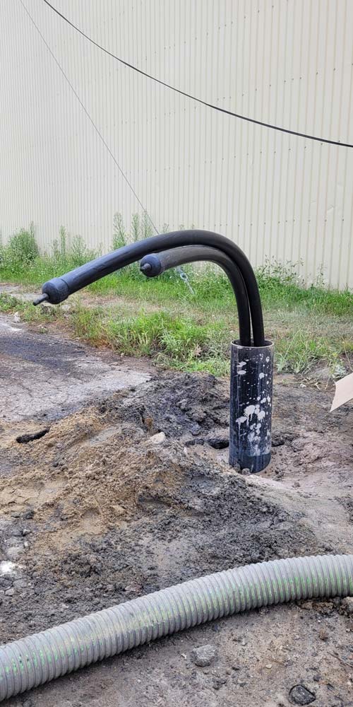 Lorsque la profondeur voulue est atteinte, c’est le moment d’insérer les tuyaux en polyéthylène à haute densité. Il va de soi que les tuyaux ne sont pas assez longs pour recouvrir une profondeur de 500 pieds; ils sont donc fusionnés sur place afin de créer une boucle continue et ainsi garantir l'étanchéité du circuit.