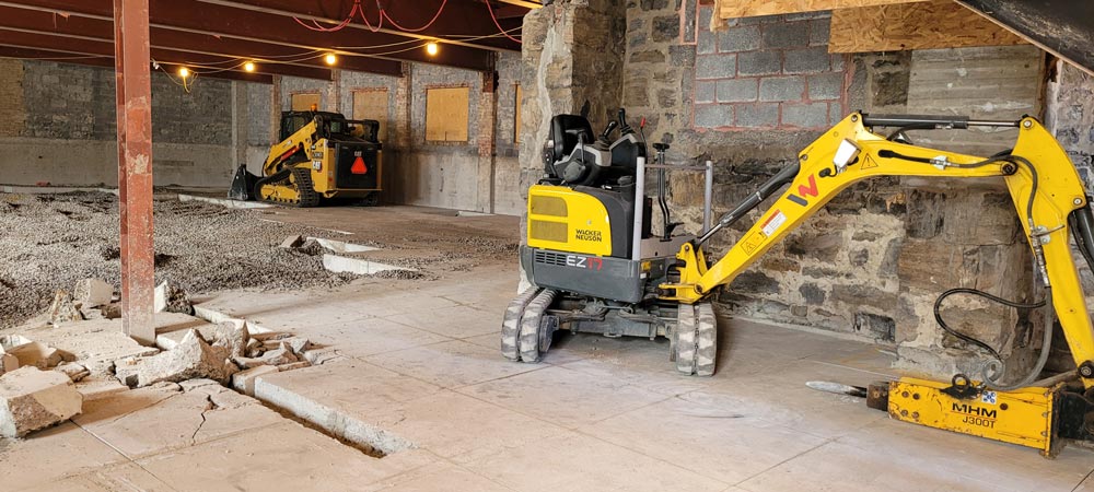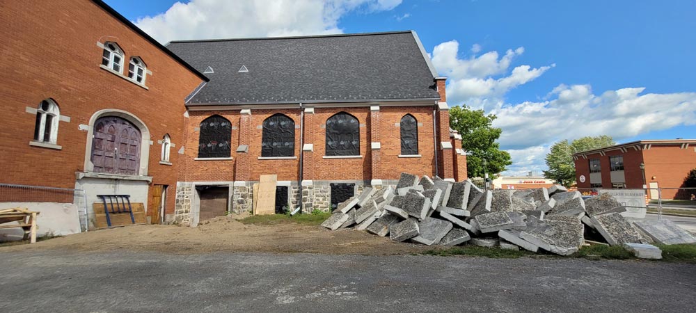 Lachute, le 11 septembre 2025 – Les travaux de transformation de l’ancienne église Unie en nouvelle bibliothèque Jean-Marc-Belzile se poursuivent! Vous avez sûrement remarqué l’amas de blocs de béton situés à l’extérieur du bâtiment? Les équipes travaillent actuellement à démolir la dalle de béton du plancher du sous-sol pour pouvoir y installer une partie de la mécanique.